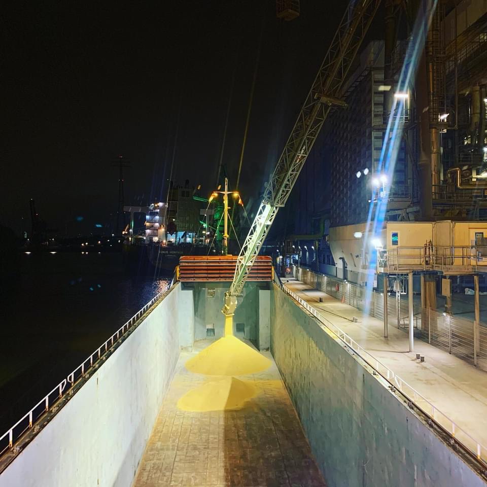 We shifted and loaded during the night soja bean meal to Denmark 🇩🇰. Fun. It is nice to be back. I realise it makes me happy and I enjoy it.