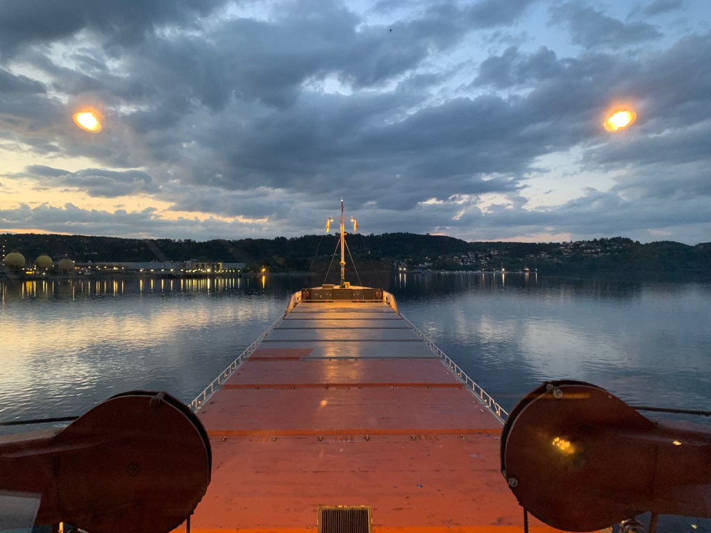 Another nice thing about sailing up north was that days became longer of course so at the end of my watch I could really enjoy the sun rising again and I simply love those moments. They are magical and peaceful. I feel that I do not have enough of those moments anymore: no sun sets, no sunrises…. Like if the job of the chief officer onboard cargo vessels was the « filling in position ». The captain having the watches that are the most « normal » ones (besides when we need to come in the harbour or leave in the afternoons… of course that is tough. And the other officer has also mostly a « day job » starting at 4 am in the bridge and the afternoon in the engine room, with a long 10hour rest at night. Well. On the other hand, if you do not sleep well one night you are ruined for the rest of the day, in my watch hours, I know I can eventually go back to bed at a maximum of 6 hours later…. That is also nice.