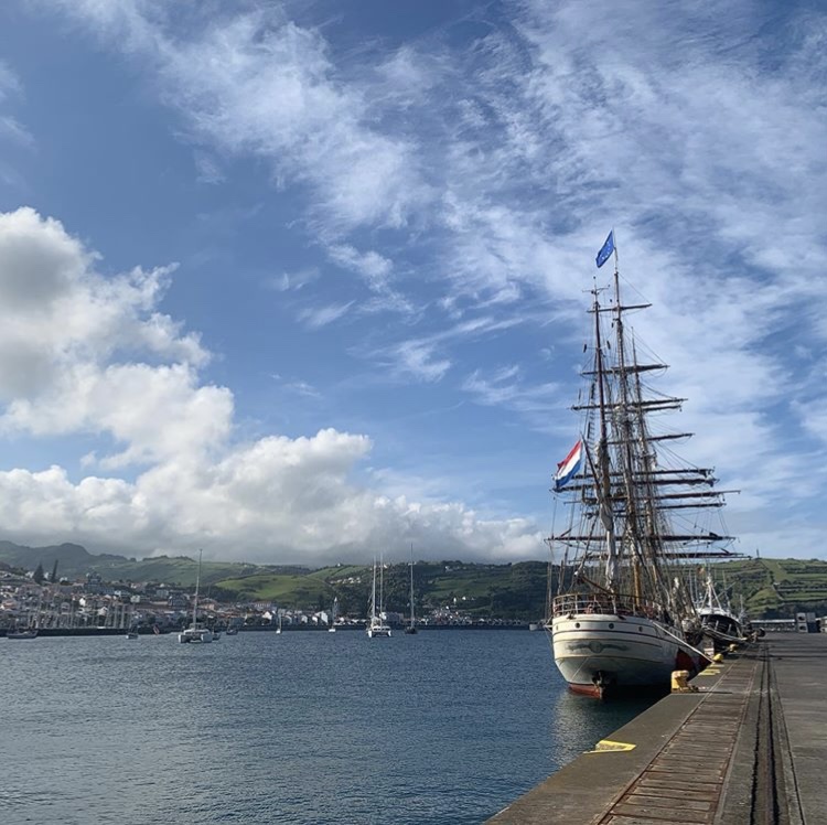 Bark Europa moored in the harbour of Horta